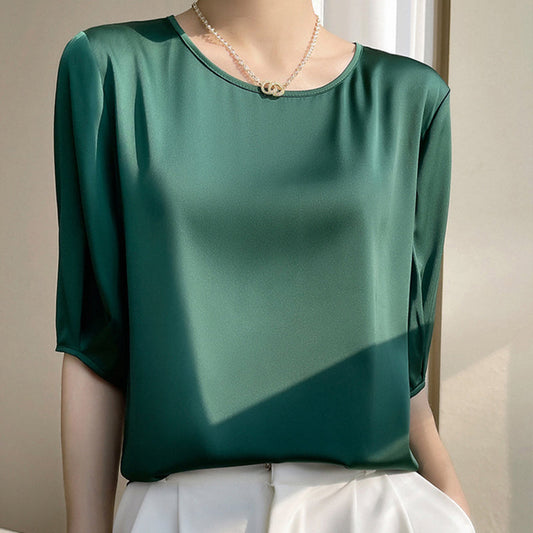 🔥Promotion - 49% discount💥Women's Round Neck 3/4 Sleeve Smooth Breathable Blouse