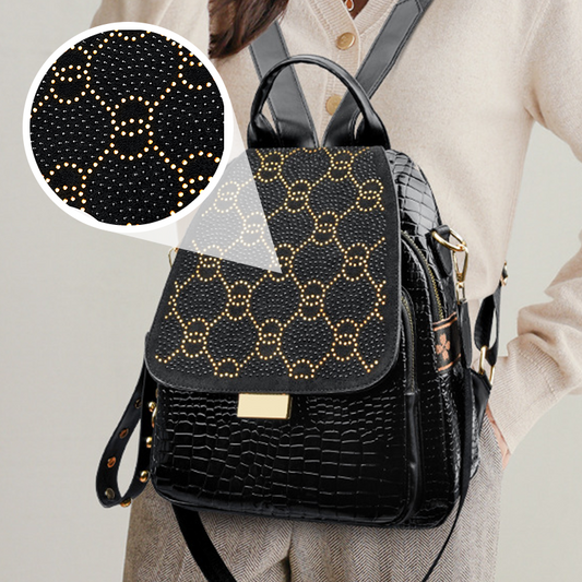🎒Women's Black Large Capacity Sparkling Rhinestone & Geometric Print Backpack✨