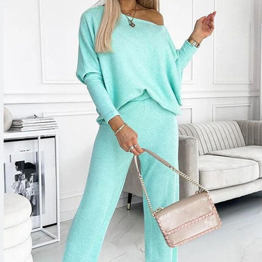 ✨Women's Solid Color Drop Shoulder Pullover and Loose Pants Set
