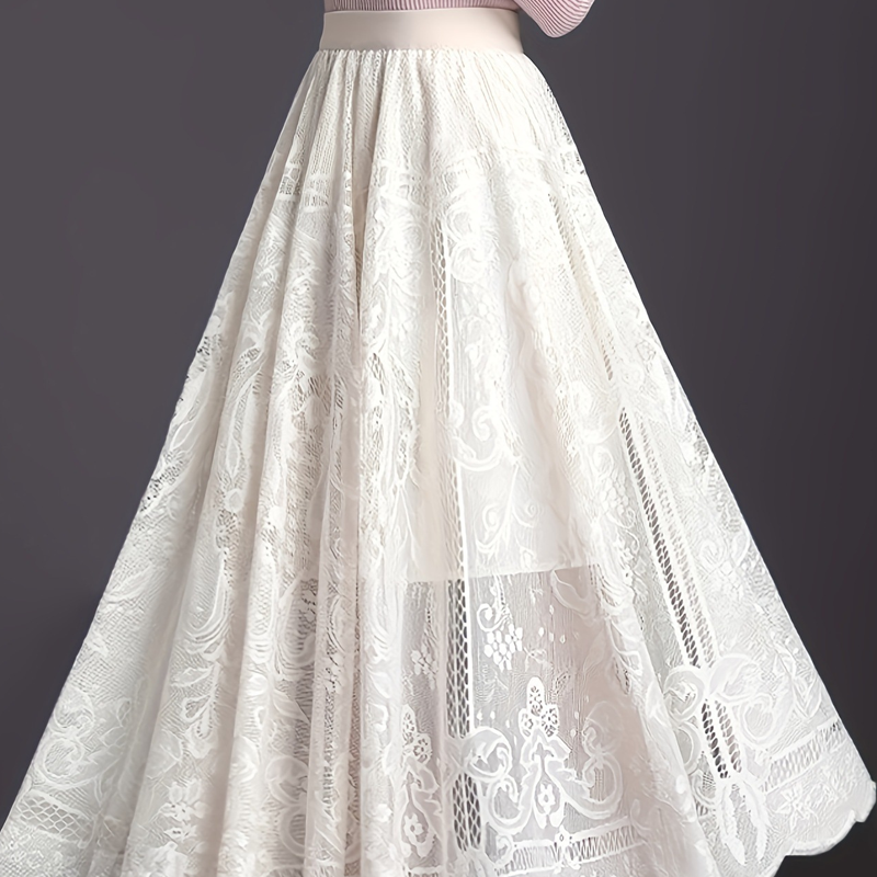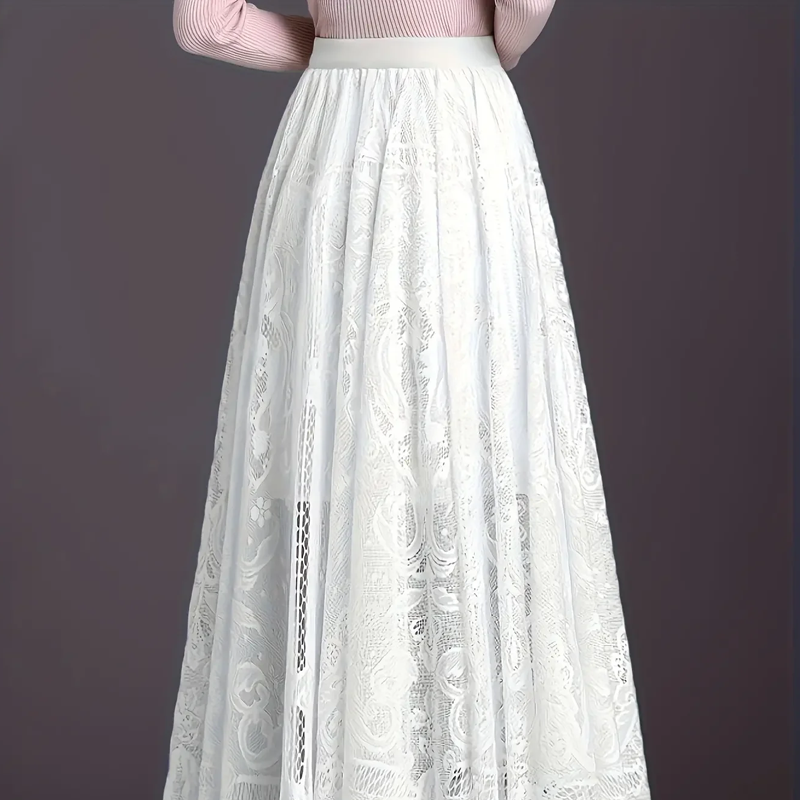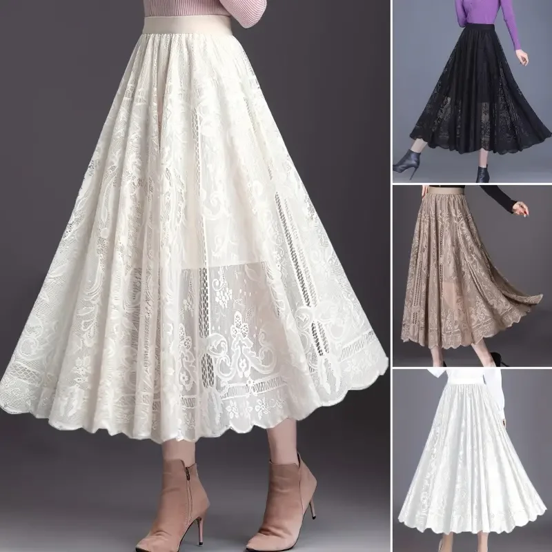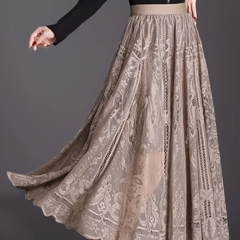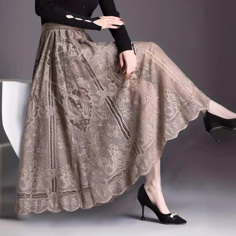 ELEGANT LACE PANELS: Delicately crafted lace runs through the skirt, adding a graceful, feminine touch that elevates your look without overpowering it. Perfect for creating a soft yet sophisticated vibe.