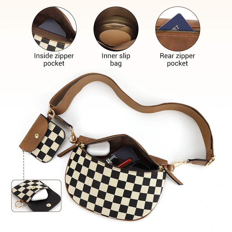MULTI-COMPARTMENT FOR SMART ORGANIZATION – Features a main pocket, inner zipper pocket, slip bag, and rear zipper pocket to securely store essentials. Keep your phone, wallet, keys, and cosmetics neatly separated and easily accessible.