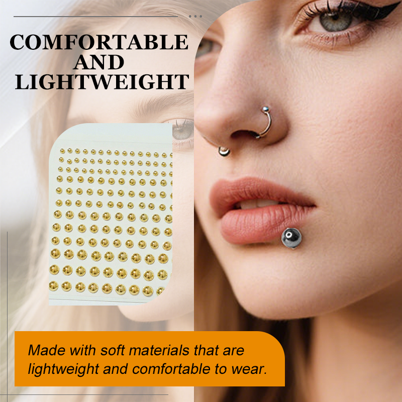 NON-PIERCING DESIGN: These eyebrow and lip stud stickers provide the trendy look of piercings without the need for needles or holes. Achieve a bold, stylish look without any pain or permanence.