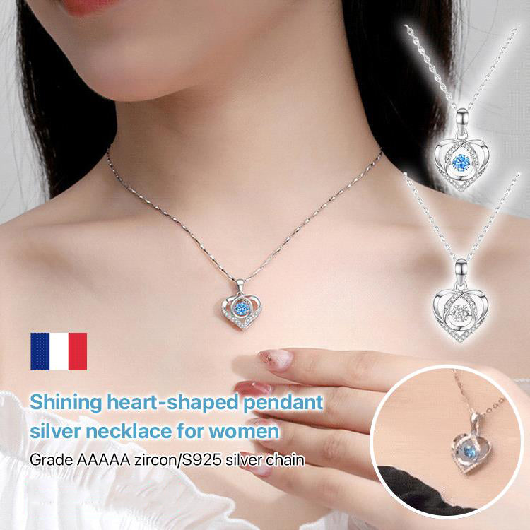 💥Hot Sale🩵Shining Heart-shaped Pendant Silver Necklace For Women✨