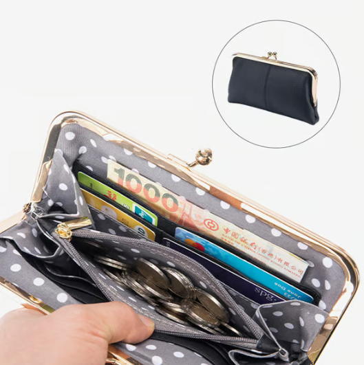 - Open the wallet using the simple clip for quick access to your essentials.
