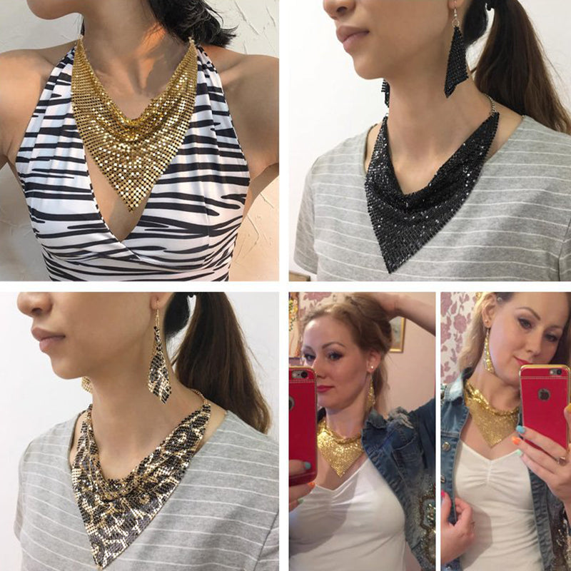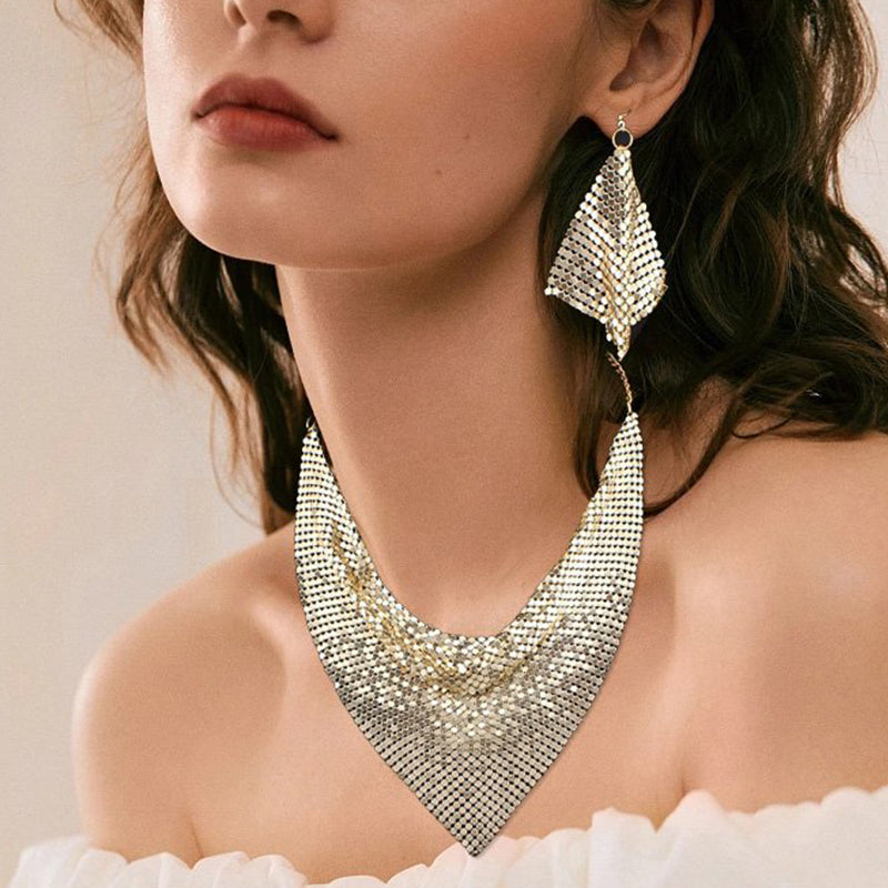 Type:Sparkling Beaded Silk Scarf Shaped Necklace Earrings Set