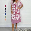 💕Printed Casual Dress With V-Neckline and Fringes on the Short Sleeves